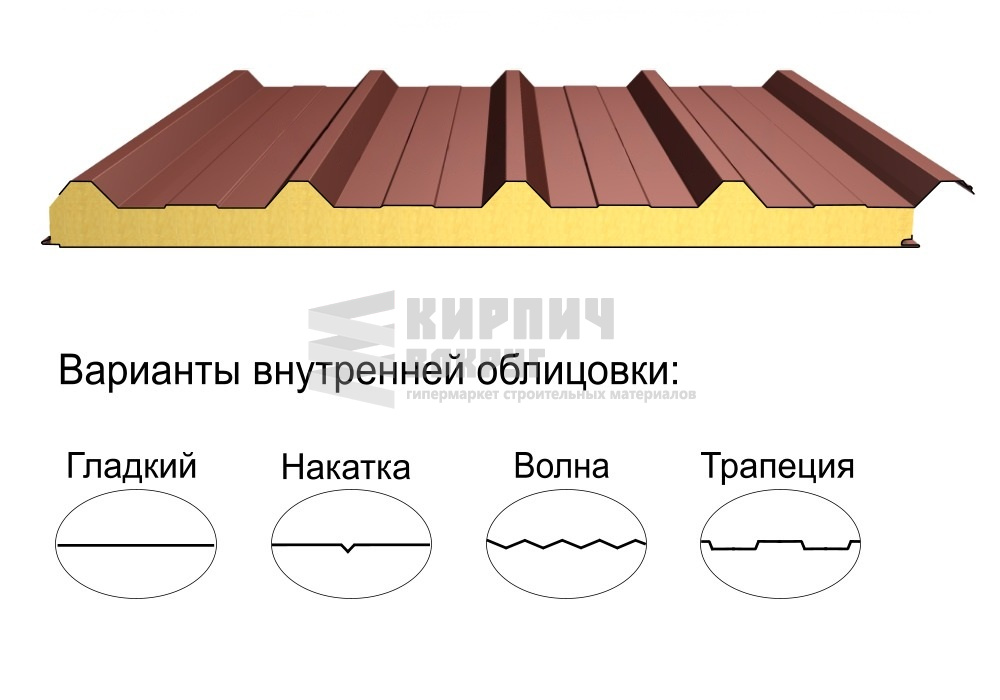 В интернет-магазине "Кирпич Вокруг" Вы можете купить Кровельная трёхслойная сэндвич-панель кровельный профиль 50мм 1000мм с видимым креплением минеральная вата Полиэстер Металл Профиль в Выборге, а наши специалисты готовы вам помочь с выбором по адресу: , или оказать консультацию по телефону: .